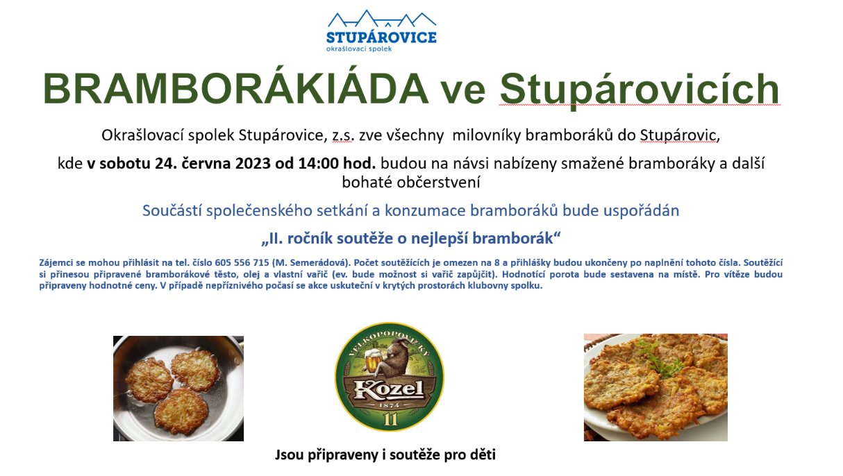 Okrášlovací spolek Stupárovice zve všechny milovníky bramboráků do Stupárovic na smažené bramboráky - 24.6.2023 od 14.00 hod.