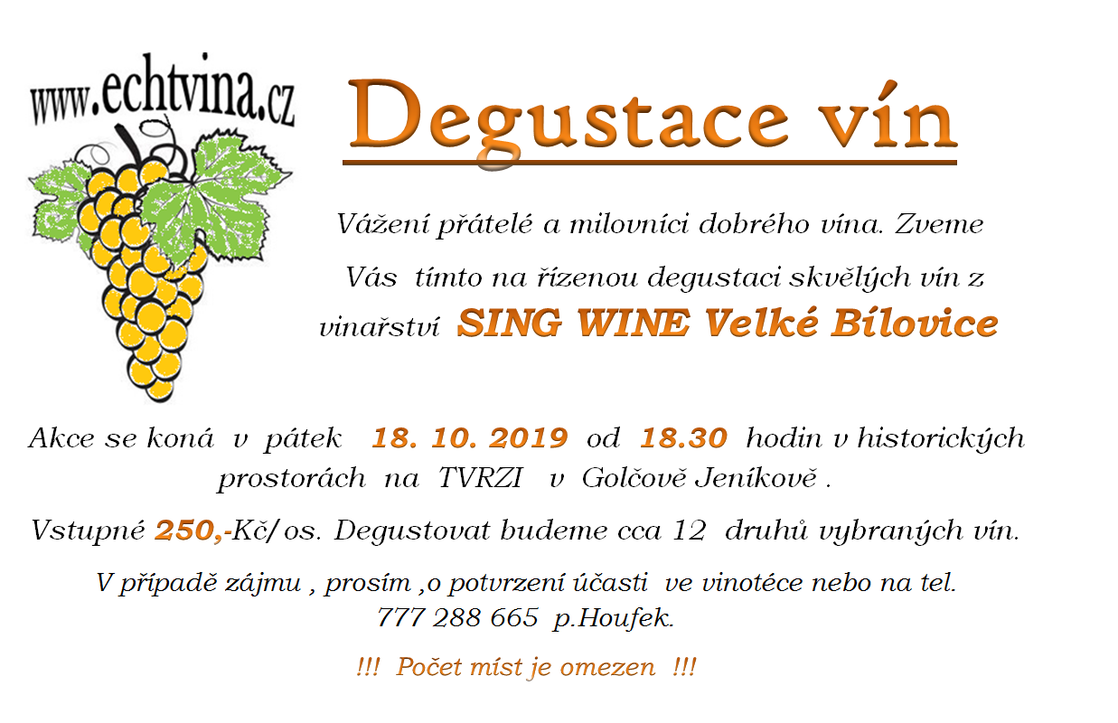 Vinotéka zve na degustaci vín - potvrzení účasti nutné.