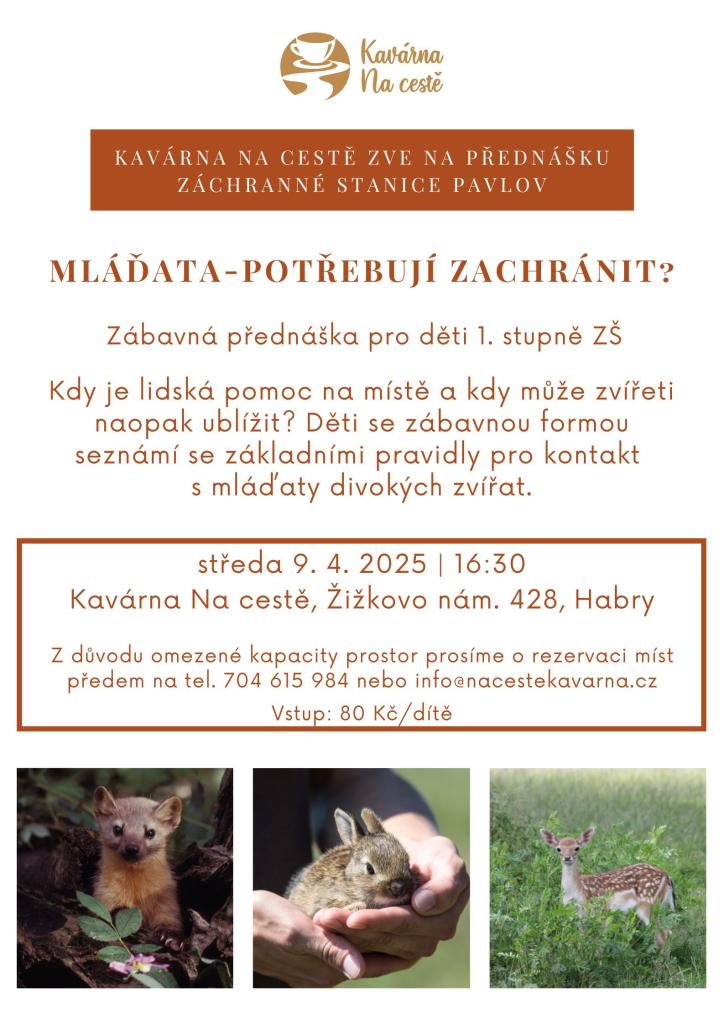 Kavárna Na cestě v Habrech zve všechny na filmový kvíz a přednášku pro děti od Záchranné stanice Pavlov.
