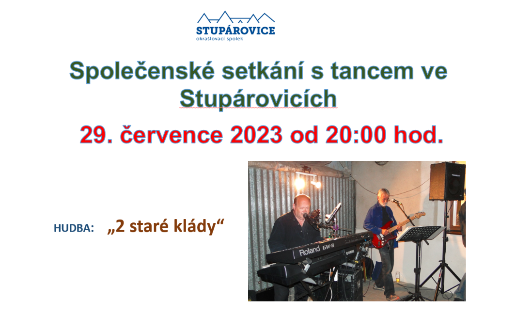 Společné setkání s tancem 29.7.2023 od 20.00 hod. ve Stupárovicích.