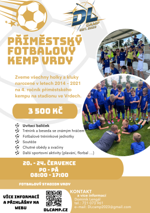 Společnost DL Camp nabízí příměstský fotbalový tábor ve Vrdech či Vlkanči v různých termínech. Děti se mohou těšit na fotbalové tréninkové jednotky, soutěže a chutné obědy. Kromě fotbalu se zúčastní i dalších sportovních aktivit, jako je plavání a florbal.