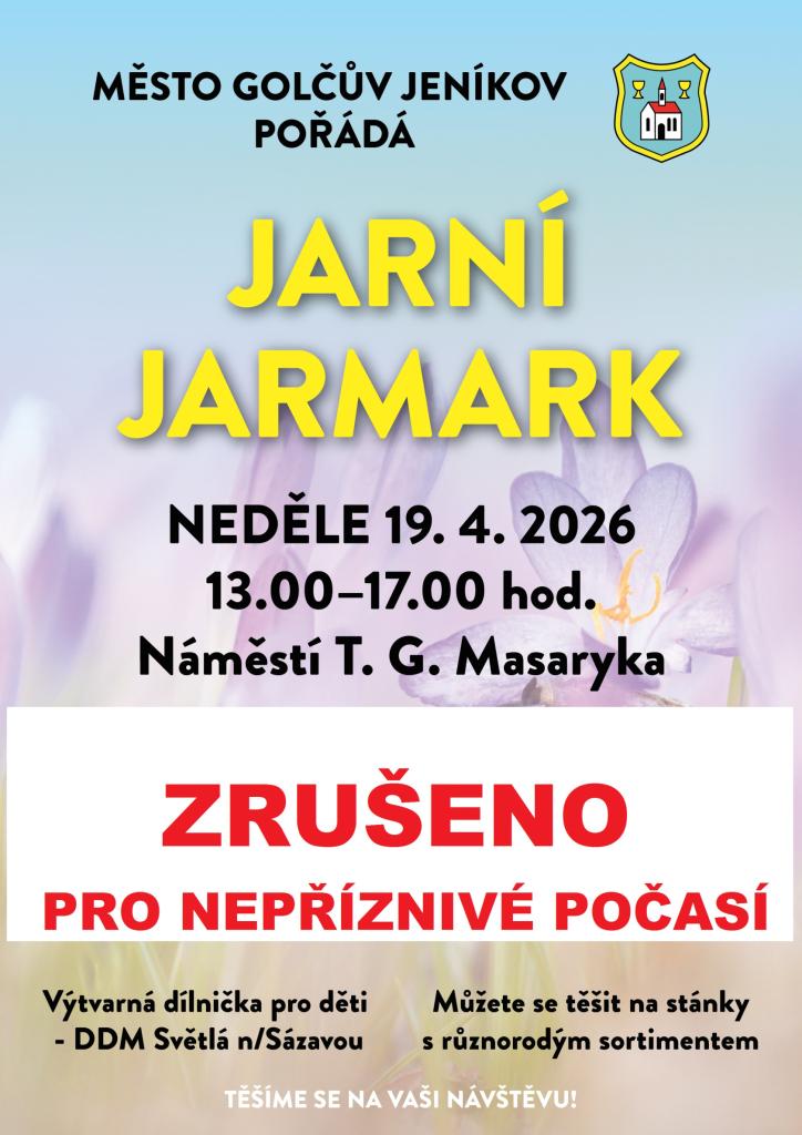 Omlouváme se, ale z důvodu nepříznivé předpovědi počasí na zítřejší den 19.4. rušíme konání Jarního jarmarku. Akce se uskuteční v náhradním termínu, o kterém budeme včas informovat. Děkujeme za pochopení.