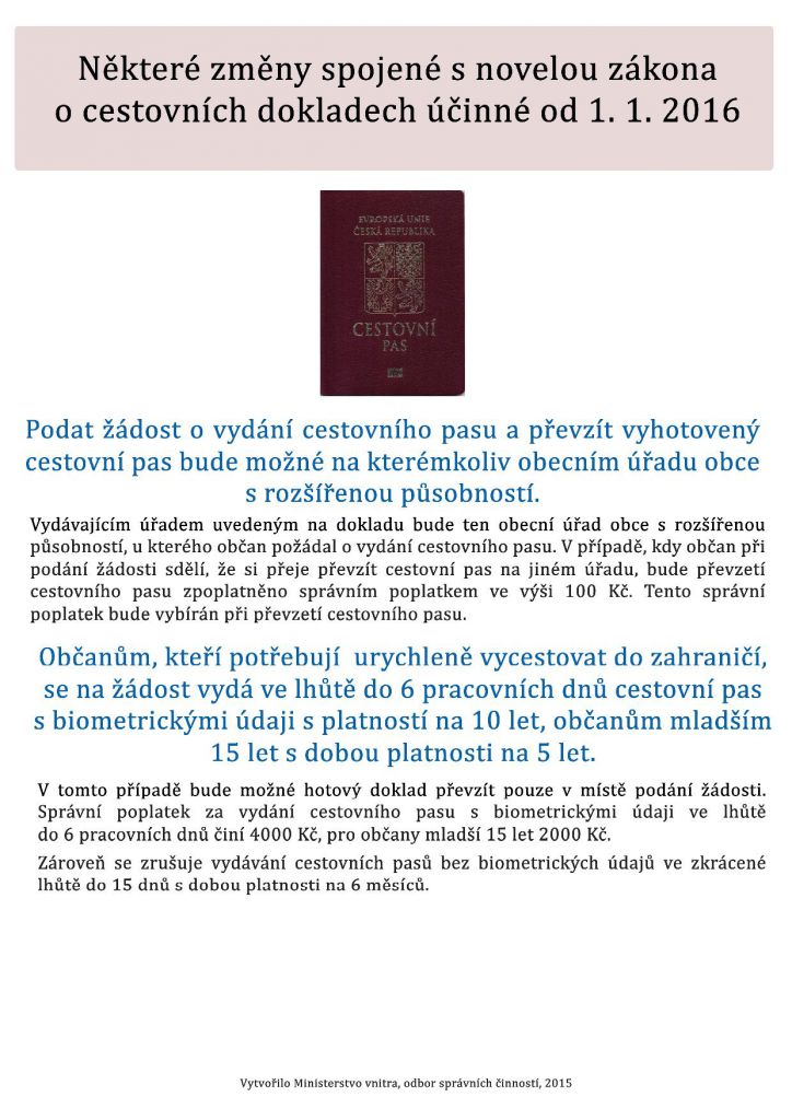 Některé změny spojené s novelou zákona o cestovních dokladech účinné od 1.1.2016