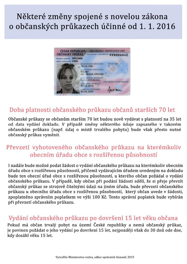 Některé změny spojené s novelou zákona o občanských průkazech účinné od 1.1.2016
