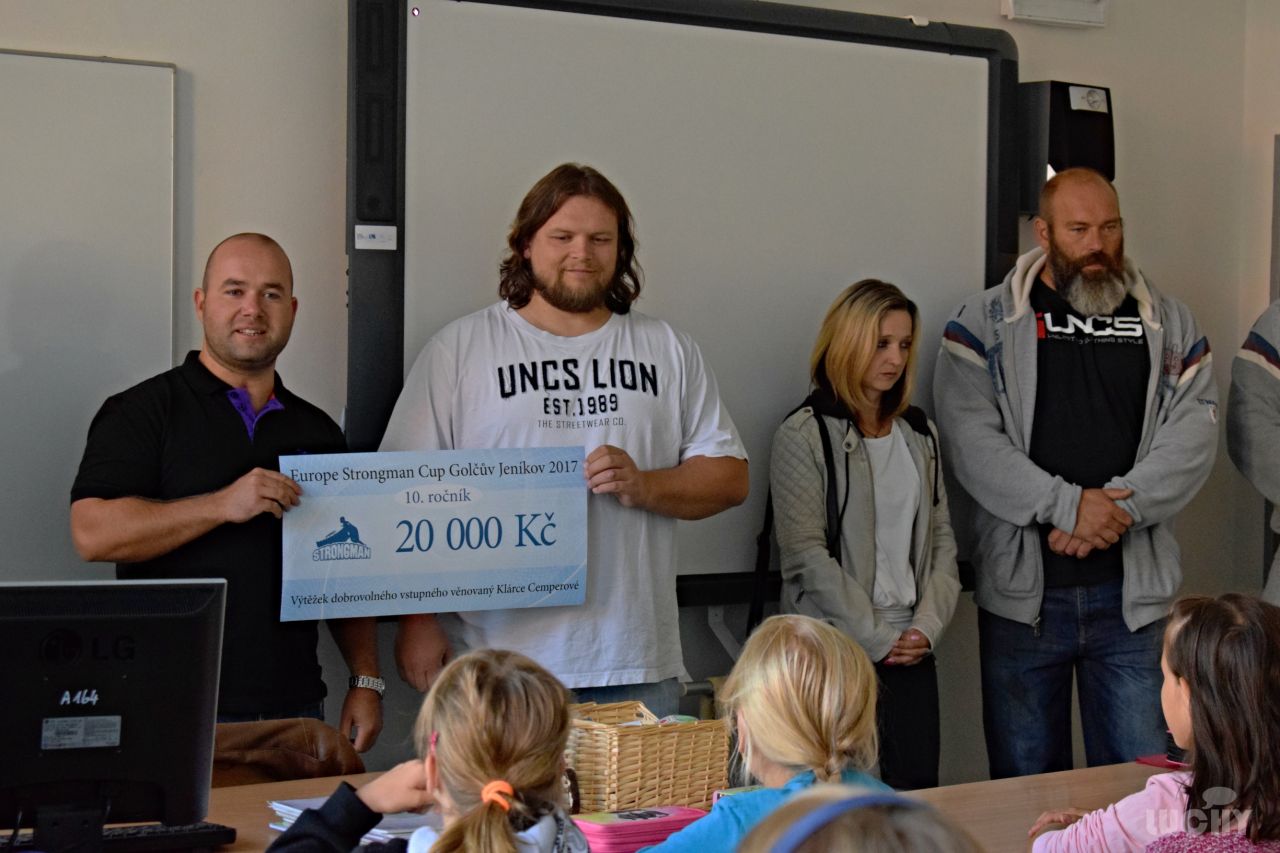 Dne 5. 9. 2017 byl předán šek v hodnotě 20 000 Kč v místní ZŠ Golčův Jeníkov. Peníze přijel předat Strongman tým v zastoupení Leoše Kubeše, Pavla Chámy, Jiřího Žaloudka a Pavla Zadražila spolu s panem starostou Vlastimilem Marušákem.