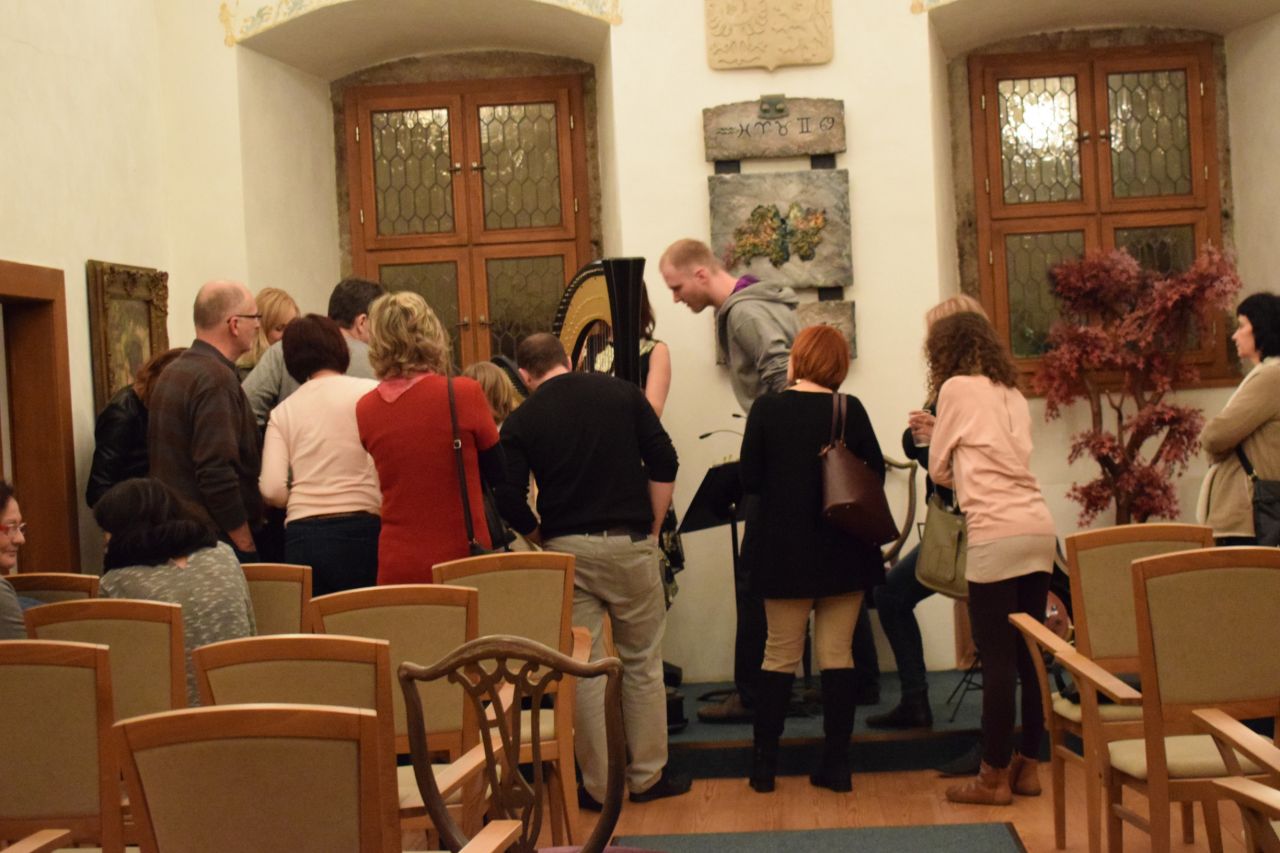 Pro diváky nechybělo ani pohoštění. Na závěr koncertu si každý mohl zkusit na harfu zahrát a na cokoliv se paní Martiny zeptat.