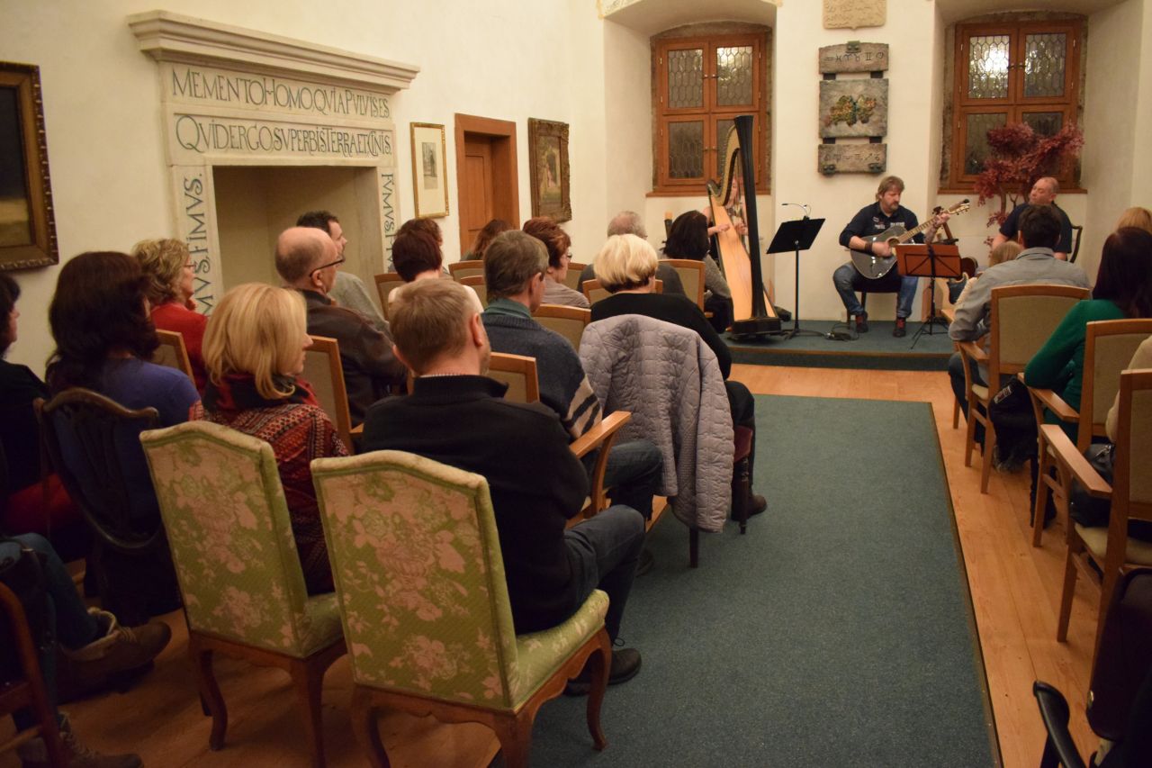 Koncert okouzlující harfenistky paní Martiny Fryčové s jejími kolegy odstartoval v pátek od 18. hodiny 16. února v Galerii Goltzově tvrzi. Přilákal nejen pravidelné posluchače a nové návštěvníky, ale dokonce i děti. Jako první zazněla fascinující skladba od Yirumy – River flows in you, která se proslavila filmem Stmívání. Zazněly i irské písně, a dokonce jedna slovenská. Trio zvolilo repertoár z oblíbené a známé hudby jako například skladbu od Leonarda Cohena, známe metalové kapely Metallica či Led Zeppelin. Nechyběly ani soundtracky z filmů Titanic a Forest Gump.