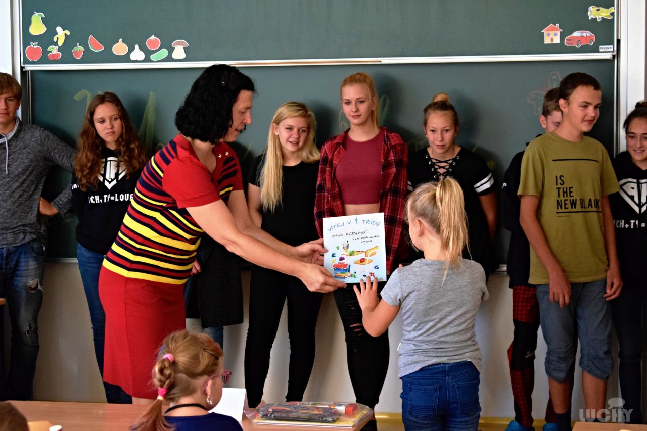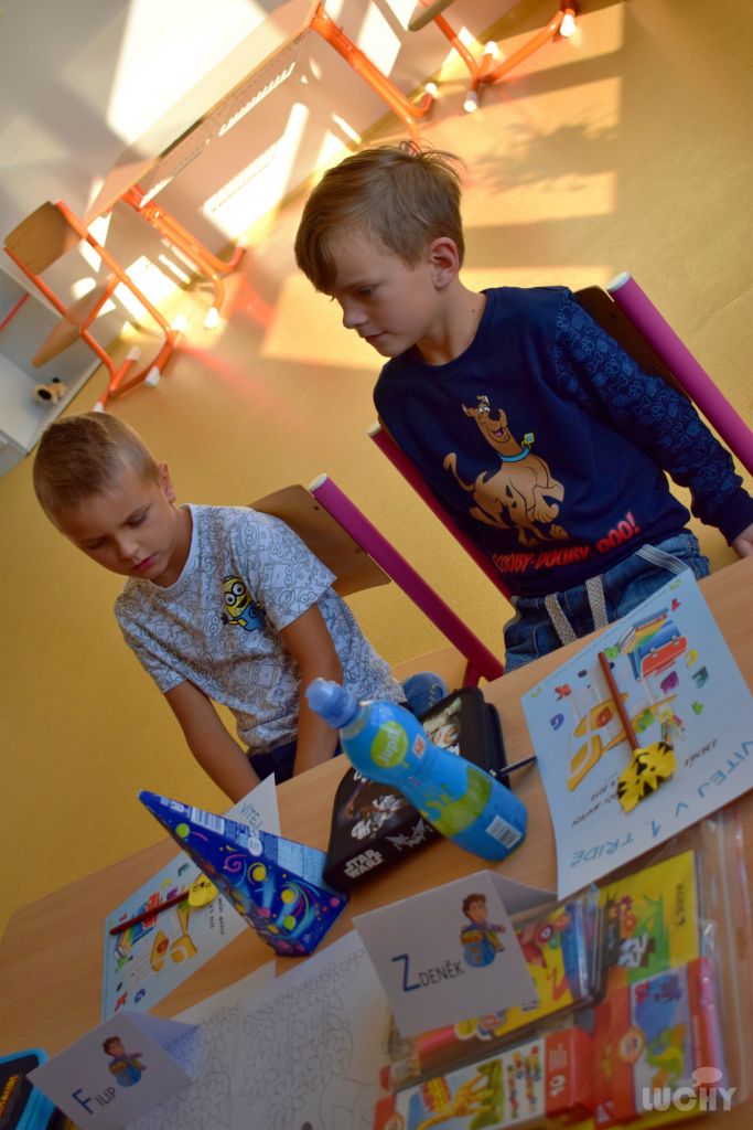 Prvňáčci je přivítali po 9. hodině, kdy každý z nich dostal malou pozornost v podobě tužky se zvířátkem a vyslechl si přání do školních let. A to nejen v českém jazyce.