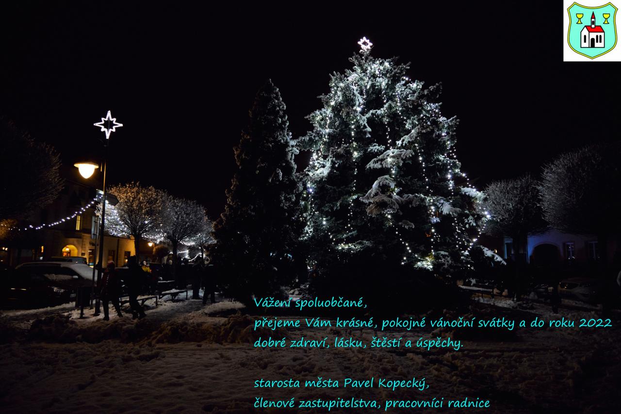 Vážení spoluobčané, přejeme vám krásné, pokojné vánoční svátky a do roku 2022 dobré zdraví, lásku, štěstí a úspěchy. starosta města Pavel Kopecký, členové zastupitelstva, pracovníci radnice