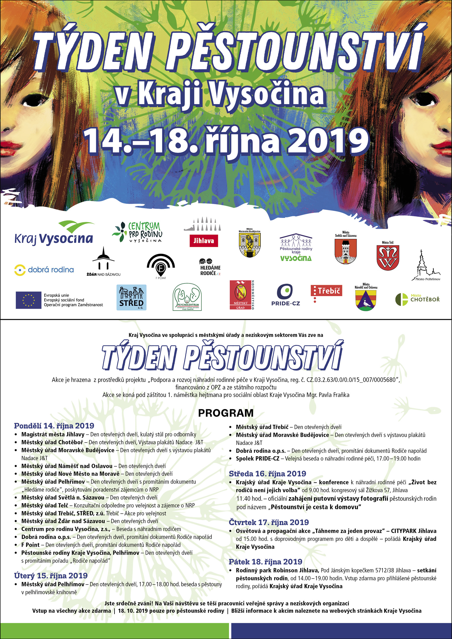 Třetí říjnový týden bude na Vysočině ve znamení pěstounské péče. Pod záštitou Kraje Vysočina se od pondělí 14. do pátku 18. října uskuteční druhý ročník Týdne pěstounství.